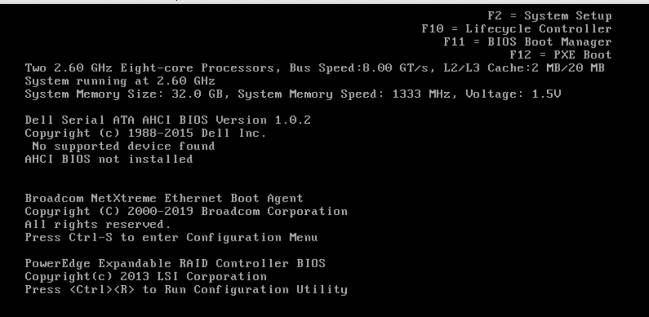 Sau khi server đã kiểm tra thông tin tài nguyên như CPU, RAM, … Ta Nhấn tổ hợp Ctrl + R để vào giao diện cấu hình RAID
