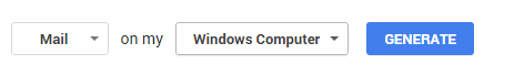 Hãy nhấp thẳng vào mục đó, sau đó kéo xuống dưới chọn Select app là Mail và Select device bạn chọn cái gì cũng được, rồi ấn Generate.