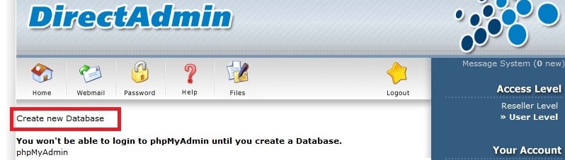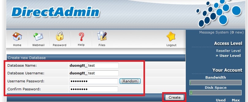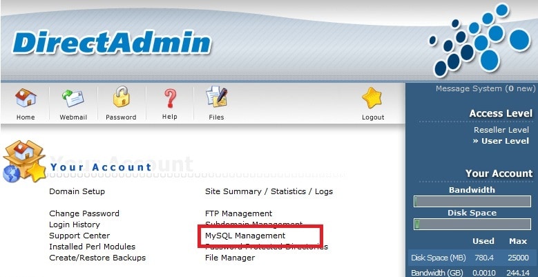 Sau khi đăng nhập vô DirectAdmin ta chọn MySQL Managerment