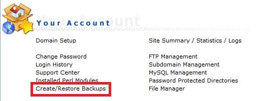 Đăng nhập vào DirectAdmin -> “Create/Restore Backups”