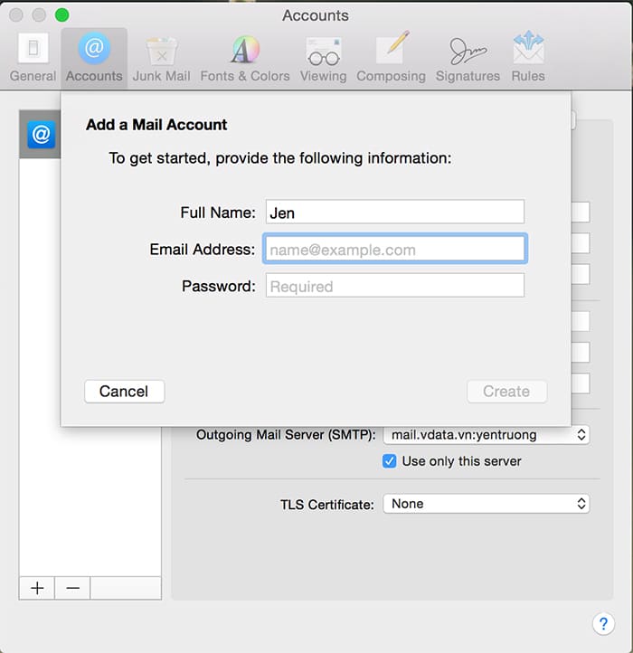 Để thiết lập một email trên Mac OS ta làm theo các bước sau: