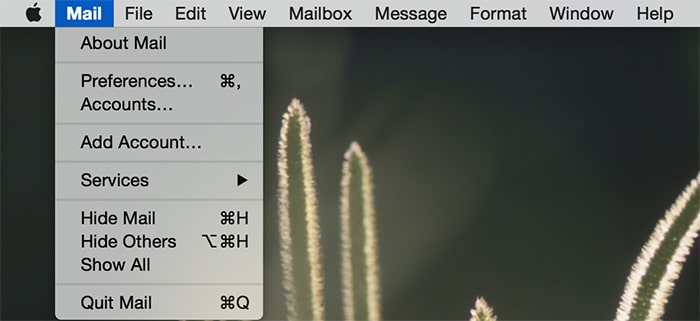 Chọn trên thanh công cụ, Mail và chọn Preferences