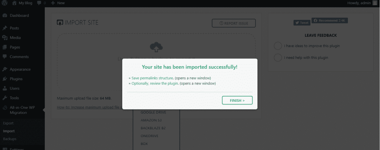 Chuyển dữ liệu website WordPress bằng Plugin All-in-One WP Migration