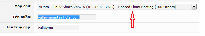 Chọn thông tin máy chủ của hosting đang thuộc server :