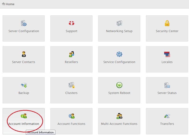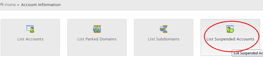Hiện hosting đã suspend, chúng ta phải vào WHM cPannel để unsuspend hosting. Các bươc unsuspend như sau, login vào WHM, chọn Account Infomation: