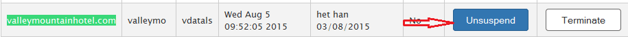 Tìm hosting có domain trên và lick vào Button Unsuspend để active hosting: