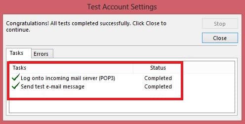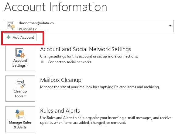 Chọn “Test account setting” để kiểm tra cấu hình đúng hay chưa.