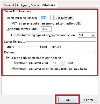 Nhập port mail và chọn vào phần Delivery -> chọn “OK“