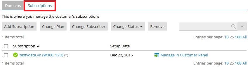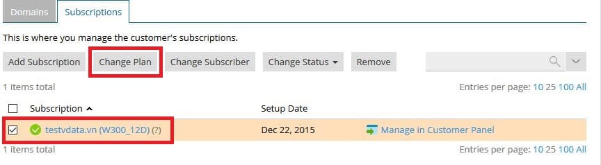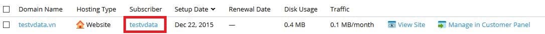 Tìm domain chính của hosting cần đổi gói -> chọn “Subscriber” của hosting