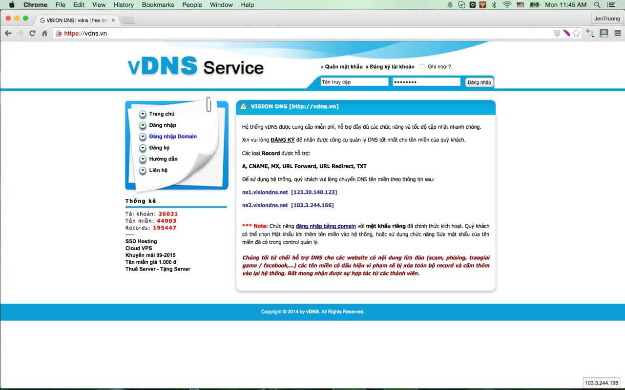 1 – Đăng nhập vào tài khoản domain tại vdns.vn