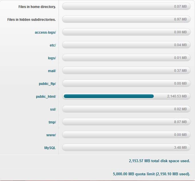 Sau khi chờ hệ thống phân tích việc sử dụng dung lượng trên hosting thì ta có kết quả như sau.