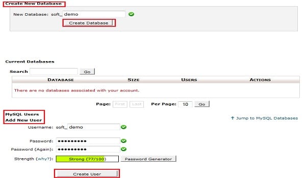 – Tại Tab Databases chọn Chọn MySQL Databases chọn Create New Database và điền tên user chọn Bấm Create Database.