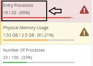 Nếu bạn xem kiểm tra thấy thông số Entry Processes màu đỏ như thế này: