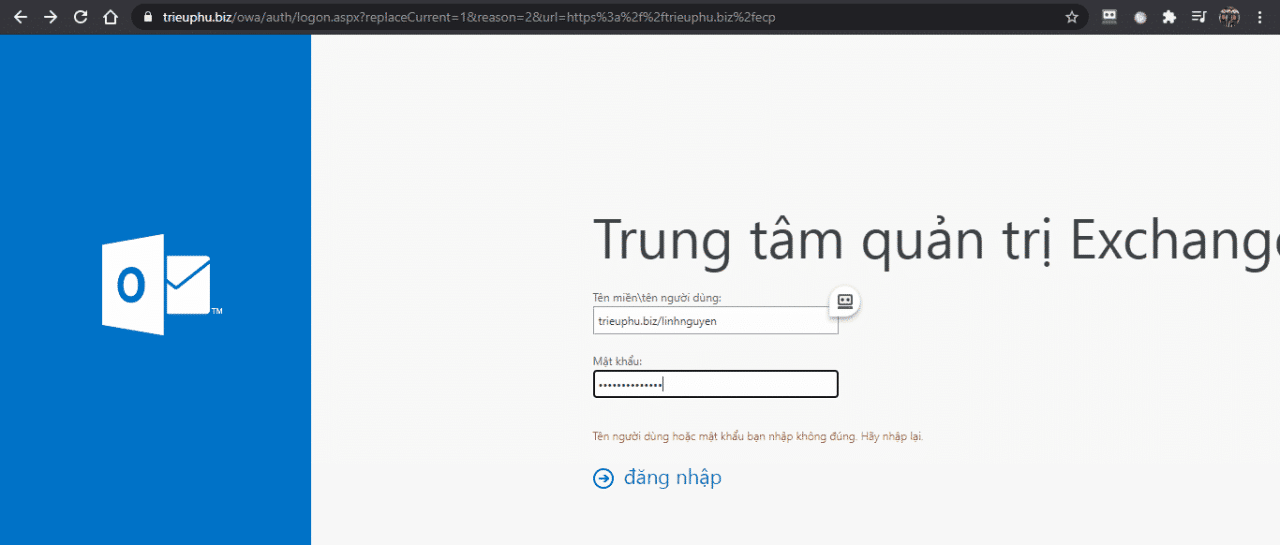 Vào trình duyệt web gõ http://ipexchange/owa đăng nhập tài khoản user linhnguyen