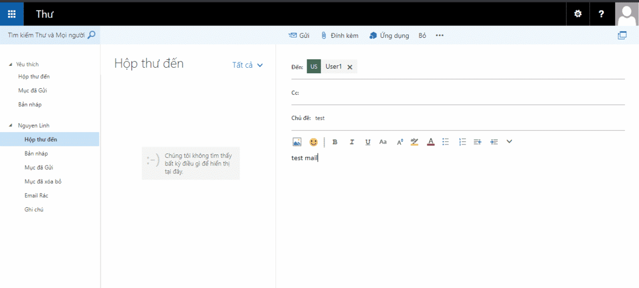 Vào trang quản lý mail của user1 ta kiểm tra đã có mail mà user linhnguyen được gửi.