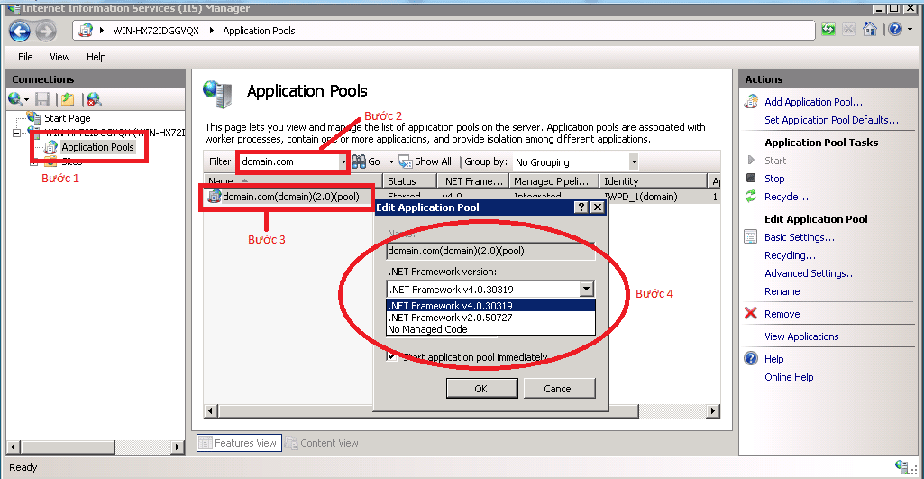 Khởi động lại dịch vụ webservice để kết thúc quá trình hạ cấp PHP: