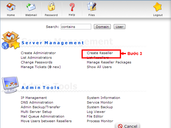 Khi tạo reseller bạn cần nhập đầy đủ các thông tin như user, email, ...