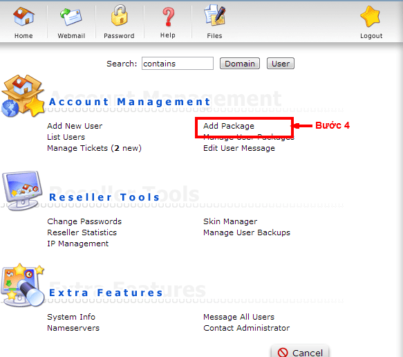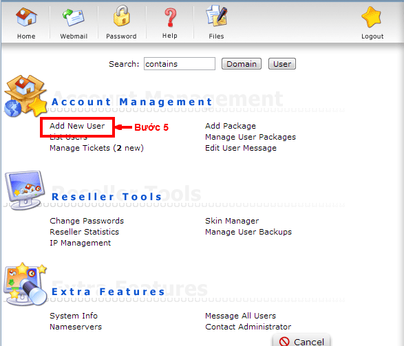 Bước 5: Tạo user( hay hosting) để sử dụng.