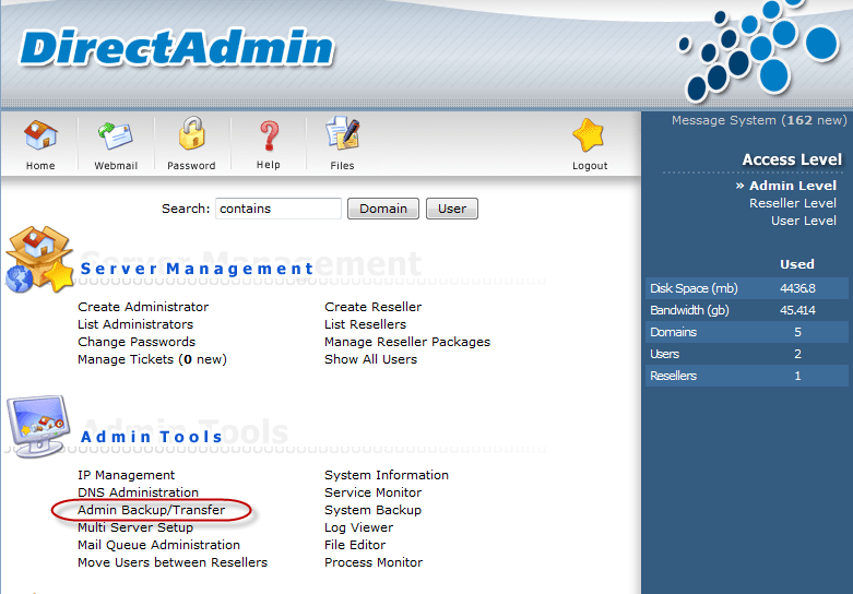 + Bước 1: Đăng nhập DirectAdmin với quyền admin. Sau đó click vào Admin Backup/Transfer để tiến hành tạo bản backup