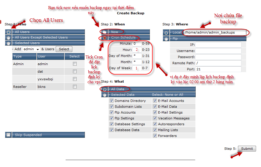 Với dịch vụ vps bạn có thể chủ động việc backup dữ liệu của các user trên vps. Bạn nên chủ động việc backup vps định kỳ để đảm bảo an toàn cho dữ liệu, tránh mất mát rủi ro không đáng có.