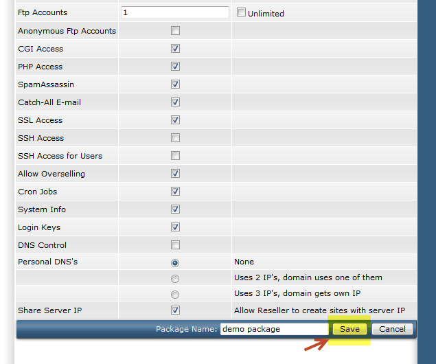 Khi tạo gói các bạn cần nhập các thông số của gói tùy theo ý.