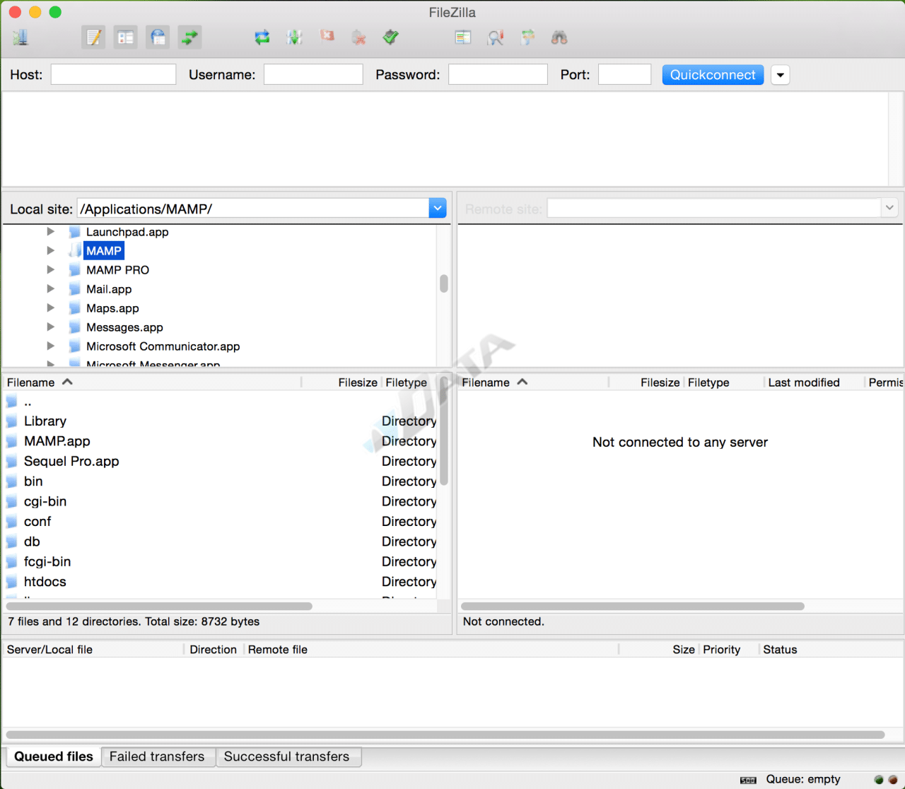 Đồi với Win OS thì thanh công cụ sẽ nằm ngay trên cửa sổ FileZilla, còn đối với Mac OS thì thanh công cụ nằm phía trên cùng, gần với logo Apple.