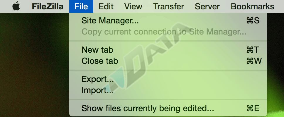 Tìm thanh công cụ của FileZilla và chọn vào tab File -> chọn Site Manager