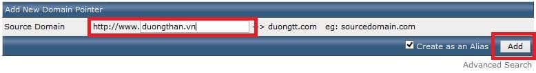 Nhập Parked Domain -> “Add”