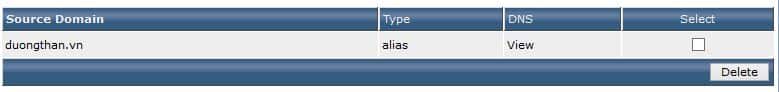 Sau khi add xong ta sẽ có list parked domain. Nếu muốn xóa domain nào thì chọn domain đó -> “Delete“