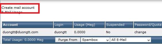 Chọn “Create mail account“