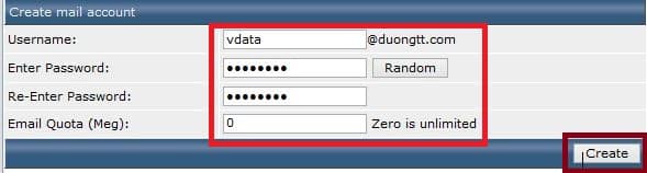 Nhập các thông tin của email cần tạo -> “Create“