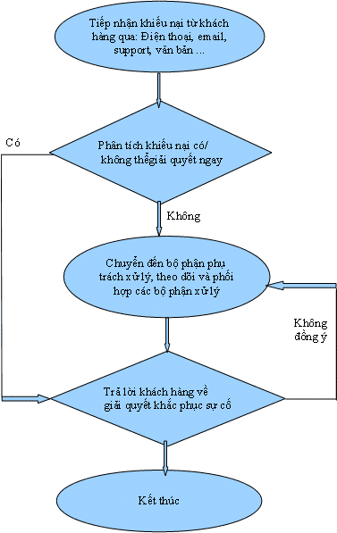 – Đối với các khiếu nại trực tiếp hoặc qua điện thoại mà có đủ thông tin, có thể giải quyết được ngay: Phòng chăn sóc khách hàng trả lời ngay cho khách hàng theo yêu cầu;